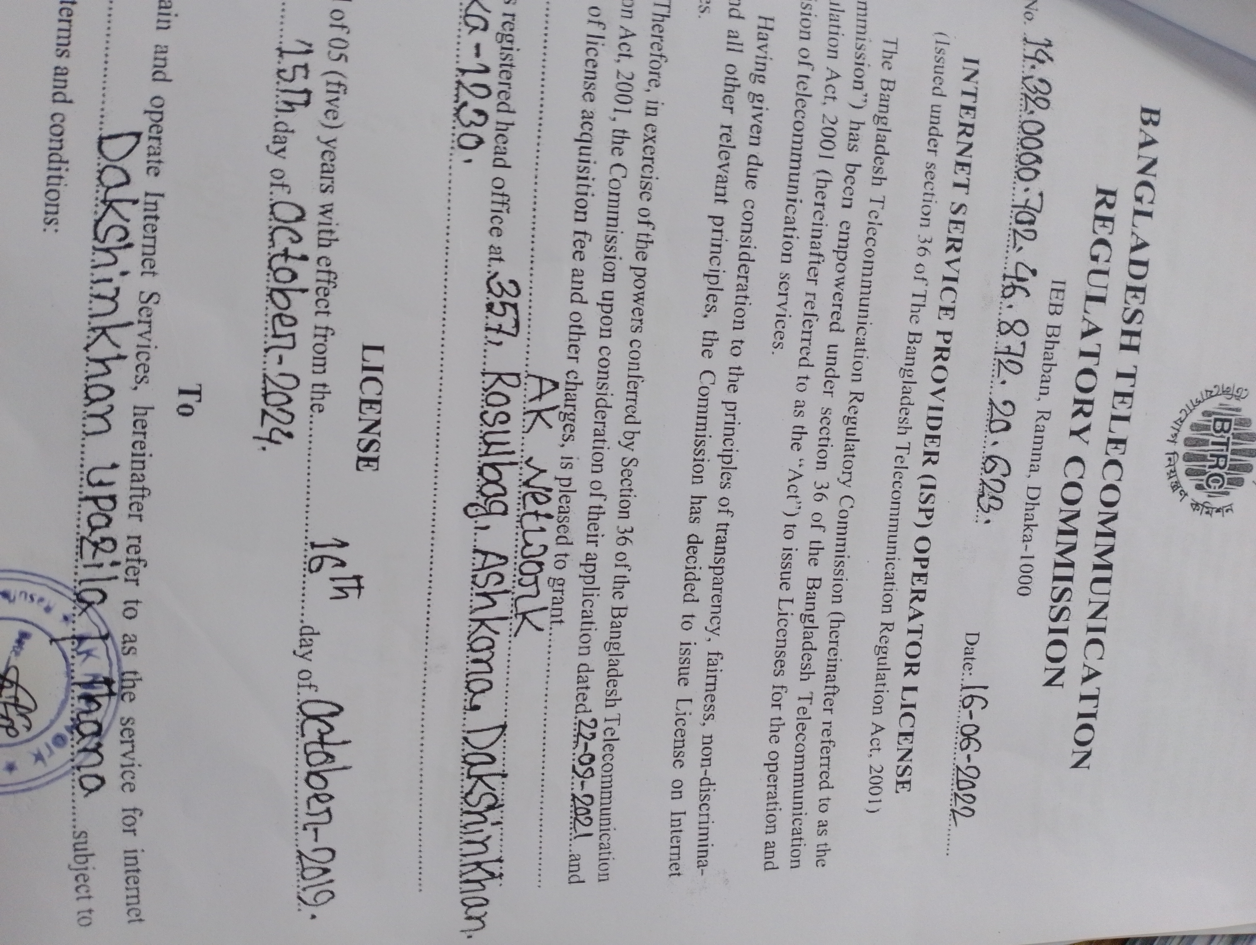 BTRC License Number :